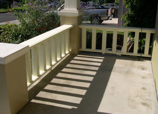 This old wimpy metal railing did not do justice to this stately home. This house looks great now with 2x10 rails and 4x4 post balusters. It’s perfect for extra lounging at the next summer party.